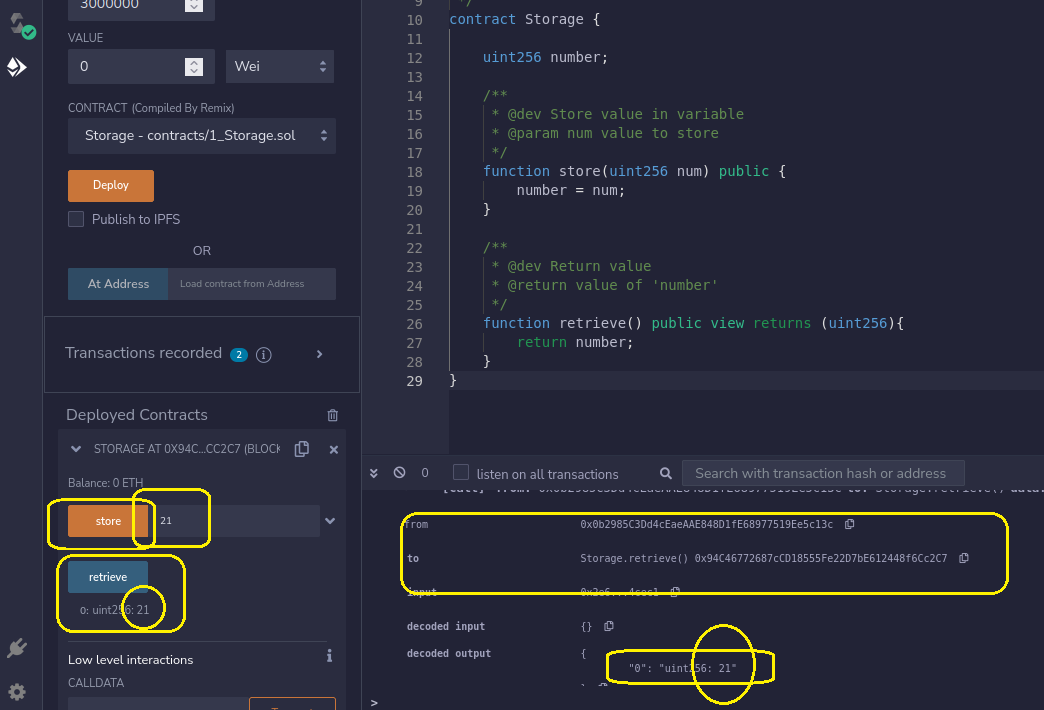 一旦我们部署它,我们就可以利用它!具体来说,在这种情况下,我们可以使用“1_Storage. sol”来存储一个数字,然后检索它!以太坊的“魔力”!