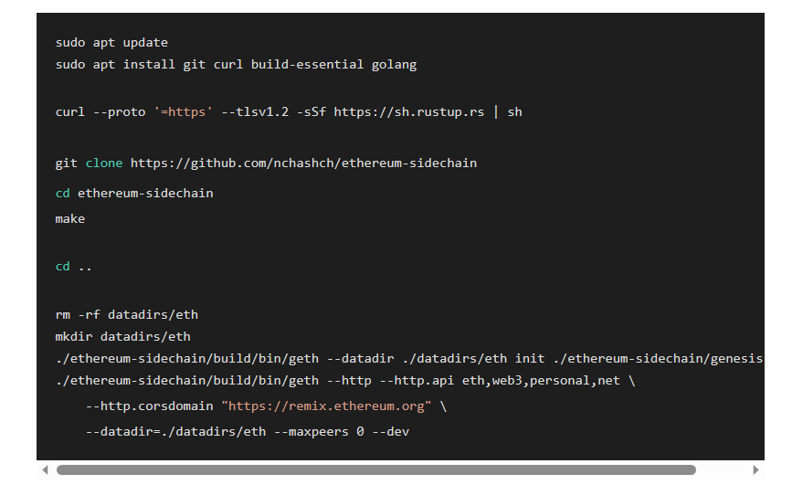 (它可能会再次询问您的Ubuntu密码)。(它也可能会抱怨已经安装了Rust,如果由于某种原因已经安装了Rust,那么就不需要再次安装了。) (“构建”步骤可能需要一点时间 — — 3分钟左右。) 您现在应该正在挖掘 ethSide 区块: