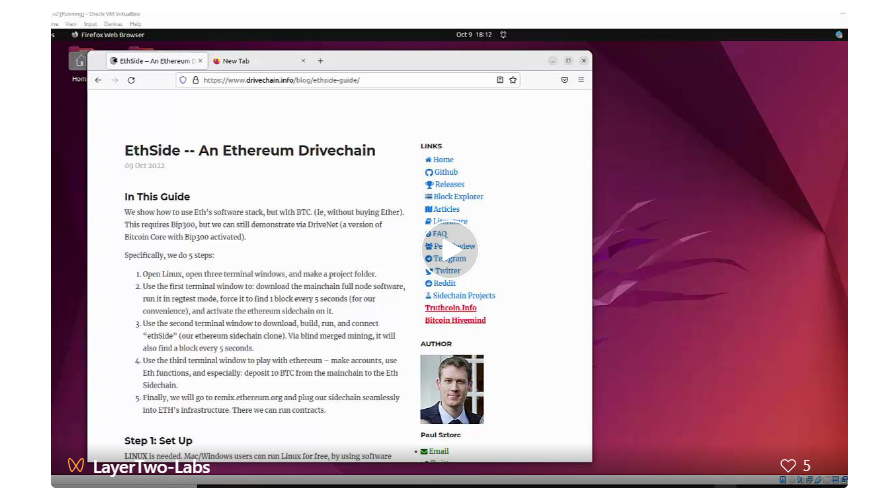 我们展示了如何使用Eth的软件堆栈,但使用 BTC 来交 gas 费用(即不购买以太币)。这需要Bip300,但我们仍然可以通过DriveNet(激活Bip300的比特币核心版本)进行演示。具体来说,我们做5个步骤:打开Linux,打开三个终端窗口,创建一个项目文件夹。使用第一个终端窗口:下载主链 Mainchain 全节点软件,以regtest模式运行,强制它每5秒找到1个块(为了我们的方便),并在其上激活以太坊侧链。使用第二个终端窗口下载、构建、运行和连接“ethSide”(我们的以太坊侧链克隆)。通过 BMM 盲合并挖掘,它还将每5秒找到一个区块。使用第三个终端窗口来玩以太坊-创建帐户,使用Eth函数,特别是:将10BTC从主链Mainchain 存入 Eth侧链。最后,我们将去remix.ethereum.org,将我们的侧链无缝插入ETH的基础设施。在那里我们可以运行合约。