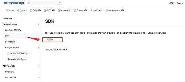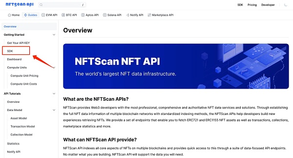 访问 NFTScan API 文档,在 Guides 中选择 SDK 选项。