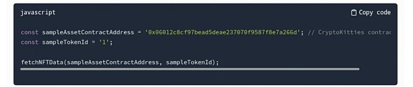 将 sampleAssetContractAddress 和 sampleTokenId 替换为开发者要探索的 NFT 的相应值。