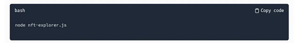 6.保存 nft-explorer.js 文件,并在终端或命令提示符中使用以下命令运行应用程序: