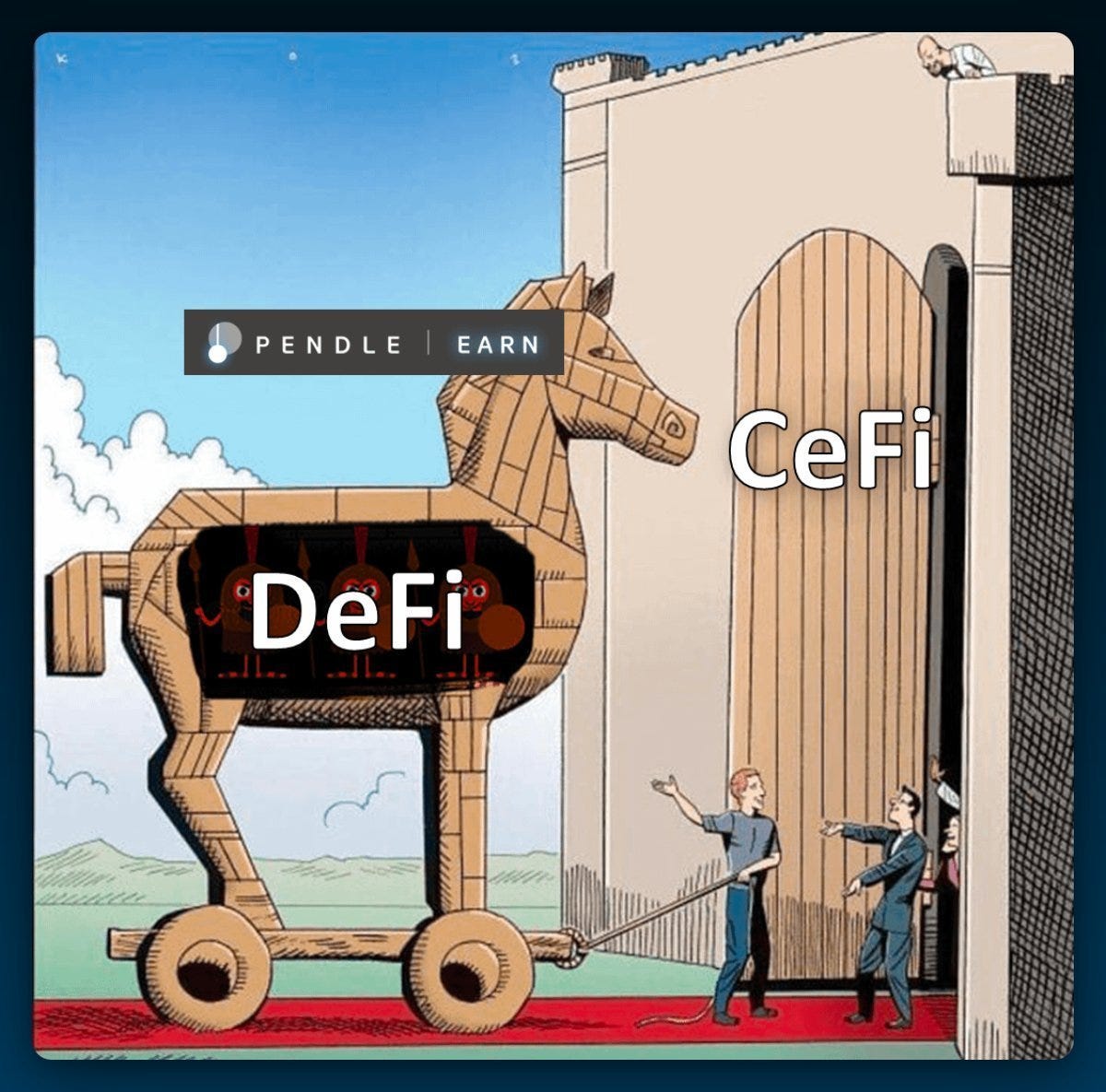 换个角度,Earn 也为 CeFi 产品打开了一扇大门,CeFi 产品可以为其用户提供 Pendle Earn 的固收产品。在吸引 CeFi 用户的同时,也在推动 Pendle 获得了更高采用——而用户也无需担心中心化不透明的黑箱操作。