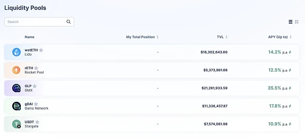 目前,Earn 支持五类资产:wstETH、rETH、GLP、gDAI 和 USDT