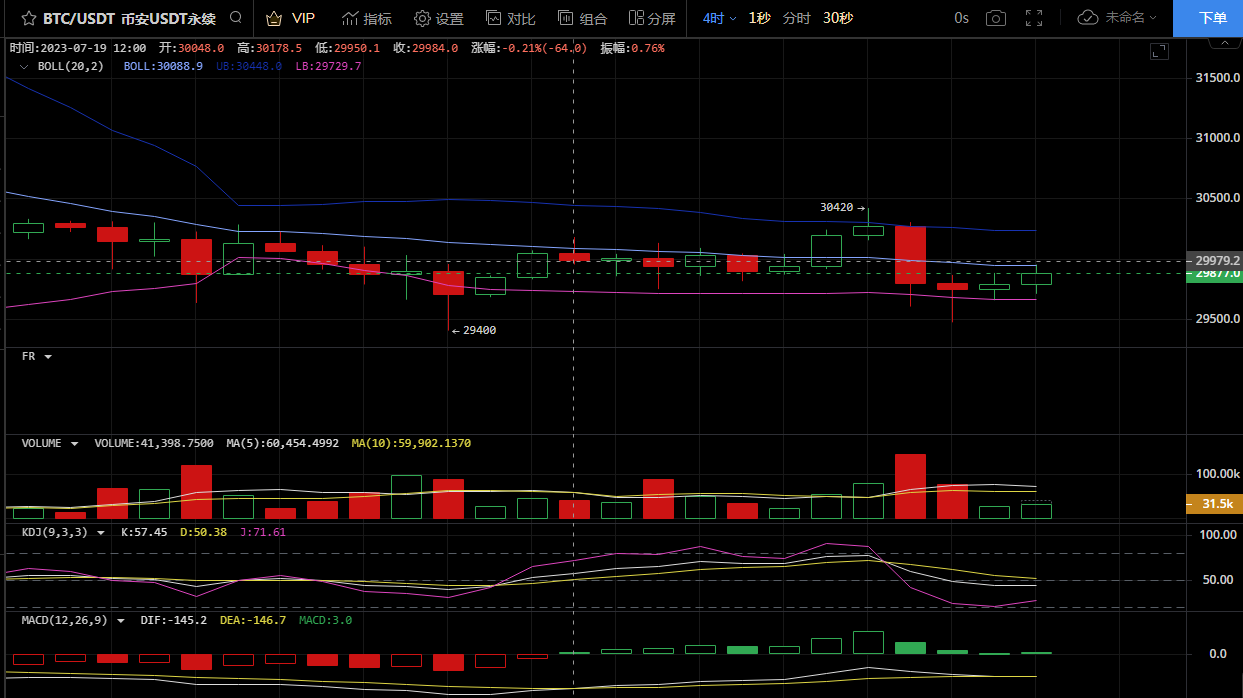 BTC:30600附近空看目标29600附近破位持有上看29400 止损30800