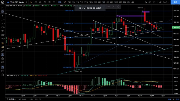 以太坊昨日高位插针至1929一线后受阻大阴回落吞没涨幅,低位跌至1878一线支撑反弹,恭喜跟上昨日思路的朋友空单获利40点,目前币价在1894附近运行,四小时级别再次回踩趋势线支撑未破走出反弹,力度薄弱预计空间不会太大,整体走势多空反复,macd空头运行但量能不足双线粘合,行情走势反复磨底洗盘严重,若没有消息面刺激将延续震荡走势,月底预计还会有一波反弹,八月份将走下行,后市思路建议逢高做空为主低多为辅,上方压制1910-1940,下方支撑1870-1830