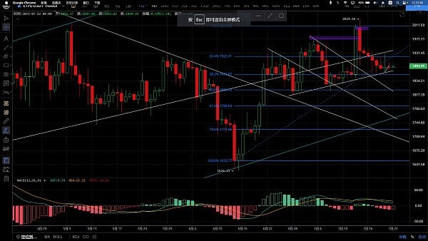 以太坊昨日大幅回踩之后整体陷入震荡修复,活动空间不大,凌晨向上插针至1906一线迅速回落,低位跌至1884一线,恭喜跟上昨日思路的朋友空单获利20点,目前币价处于1892附近运行,四小时级别行情整体呈窄幅震荡,空间逐渐变小,macd无量运行双线粘合,ma均线走势凌乱,多空反复没有持续性,布林带三线缩口走平预计变盘行情即将来临,日线级别k线上影线较长且连续多次收在1900下方,可见空头走势占优,上方阻力明显,macd空头运行双线死叉向下指引,操作思路建议未走出震荡区间前高空低多对待破位持有,上方压制1910-1940,下方支撑1870-1830