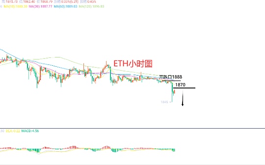 7月23日以太坊(ETH)合约技术面分析:今日方面,大周期日线级别昨日报收小阴线,K线形态上连阴下跌,附图指标死叉向下,价格处于震荡下行,而早间的加速下跌破位无疑是给出了一些明确的信号,而接下来需要关注的位置就是1820区域了以及行情走势的延续性和力度;短周期小时图昨日日内震荡今日早间下跌探底,开跌口位置在1888区域,今日看延续还是老规律,反抽力度不能且不能破开跌口位置,看延续下跌和价格回补;因此今日ETH短线合约交易策略:反抽1870-1875区域空,止损1890区域,目标看1830-1820区域;