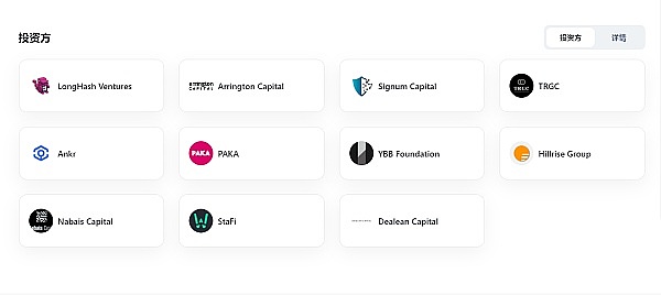 Stone早期就已经获得了Arrington Capital、LongHash Ventures、TRGC、Dealean Capital、PAKA、StaFi、Ankr、Signum Capital、YBB Foundation、Hillrise Group、Nabais Capital等多家投资机构的投资及支持。