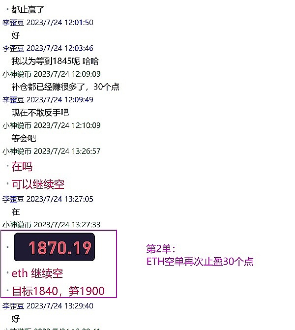 小神:恭喜 新朋友2单全部止盈 eth空单拿下60点 太完美了