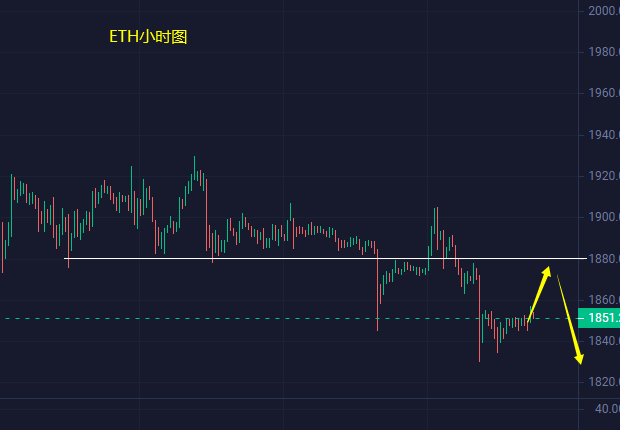 以太坊,一直处于弱势状态下的以太坊,本月昙花一现冲高2000关口后原形毕露,随即展开连续性的弱势回调,昨日在比特币的带动之下也是顺利有效失守1900关口,前一日的反弹也只能沦为下跌前的调整;不过从日线技术面来看,这轮下跌的空间并未有效打开,目前日线的关键支撑在1820-1830区域,前两次此位置已经形成双底支撑,并且价格都依托此位置迎来反弹,那么这次的回踩测试,破位与否才是决定下跌延续的关键,也是日线的多空分水岭所在;回到短线,昨日两度回踩1830附近反弹,短线阻力转换位1880,日内反弹触及此位置上方可空,下方则可依托1820日线支撑做多看反弹。
