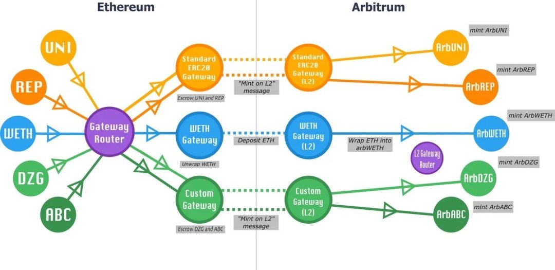 2. 使用第三方 mint/burn 系统,如 Multichain 或 L 0 OFT。 这解决了流动性问题,但却将发行者永远锁定在底层桥接器的安全性上,它还会破坏可替代性:例如,通过 Arbitrum 的桥接器,就会产生「不同」的代币。