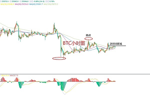 7月29日比特币(BTC)合约技术面分析:今日方面,大周期日线级别昨日报收小阳线,K线形态上连阴单阳,整体价格还是震荡整理当中,并没有爆发方向性的上涨或者下跌,附图指标死叉向下,延续差,力度小这是一直一来的问题所以在,却也只能等。所以一直让大家短线交易也是这个原因。短周期小时图前期高点位置在29700区域,低点在28850区域,而昨日价格在欧盘上涨没有向上破位开跌口位置,就还是弱势,当前价格承压回撤,附图指标有死叉迹象,因此今日BTC短线合约交易策略:现价28350区域直接空,止损29600区域,目标看28800-28600区域;