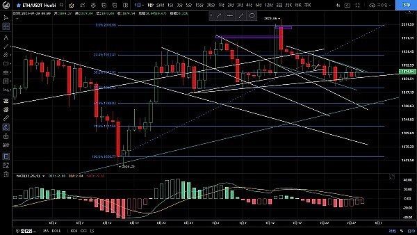 以太坊整体走势和大饼一致,整体呈区间震荡,空间变窄,上方多次试探1880一线都未有效突破,随后走出回踩,恭喜跟上昨日思路的朋友空单小幅获利,目前币价在1873附近运行,四小时级别多空走势反复都没有延续,上方趋势线有效压制多次试探都没突破,短期多头减弱,有回踩需求,日线级别关注能否突破1880并站稳1900上方,若不能则延续震荡走势或向下插针,周末加上月底波动不大很正常,预计下周才会出现行情,整体思路没有变化反弹高空为主低多为辅,上方压制1890-1920,下方支撑1850-1830
