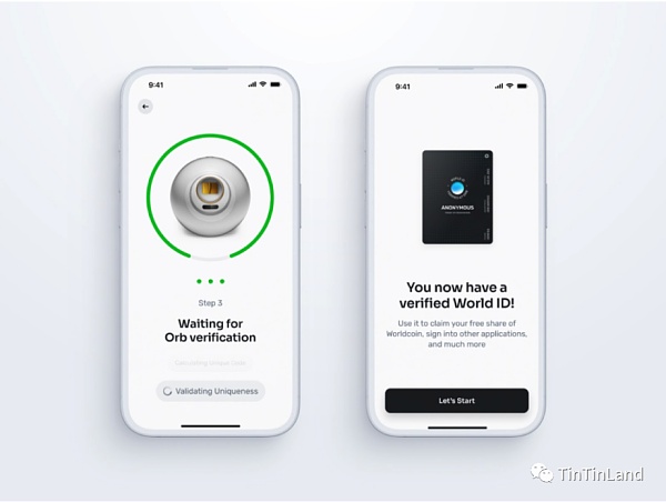WorldCoin 使用专用的生物识别硬件设备——眼球扫描仪 Orb,通过扫描每个用户的眼睛虹膜来验证身份,生成每个人独一无二且无法破解的数字代码,从而与大数据库进行比对,检查该人是否已经注册,并为他们分配一个可以用作全球数字护照的 World ID。完成后,用户会获得 25 个免费的 Worldcoin 的 token。