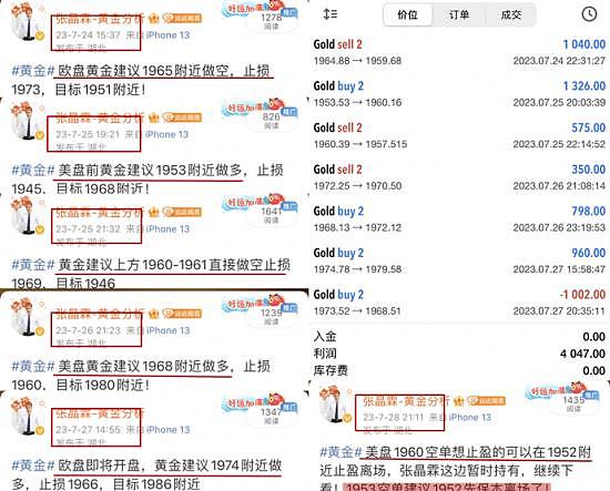 本周20美金利润完美收官:(由于本周策略较多,只截图重要策略,策略全网公布,绝非空穴来风,张晶霖希望大家能一探真伪)本周初的下跌,周二的变盘都完美拿捏了,但周四的变盘行情我们迎来了第一单止损。周五提示的1953空单我们未进场记载,1960空单目前暂时持有中。但美盘我们在1952附近是提示了1953空单保本离场的,1960空单止盈还是持有,大家自行控制!本周我们共操作9单(8胜1负),折算盈利20个点(单手利润2000美金)。每日的操作思路均全网提前公布。如果近期操作不如意的朋友也不用遗憾,我们中线布局(1932附近空单)已经开启,其中的利润空间仍不可估量,绝对又是一次资金多倍利润的机遇,张晶霖期待你的加入。