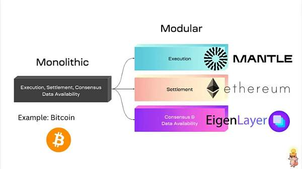 1.模块化的数据可用性:通过使用 EigenLayer,Mantle 可以实现超越传统 L2 的更高交易吞吐量。可访问的数据可用性也意味着 Mantle 可以提高吞吐量,而不会影响安全性或减少验证节点的负担,从而减少处理需求并促进去中心化。