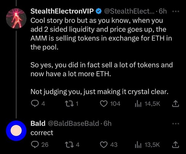 一夜千倍后,BALD 上演瞬间崩盘。昨晚 8 点半左右,BALD 部署者撤除 1 万枚 ETH 和 2.24 亿枚 BALD 流动性,一两分钟内 BALD 价格从 0.09 美元下跌至 0.02 美元附近,跌逾 85% 以上,目前已经下跌至 0.006 美元附近,较最高点跌去 93% 以上。