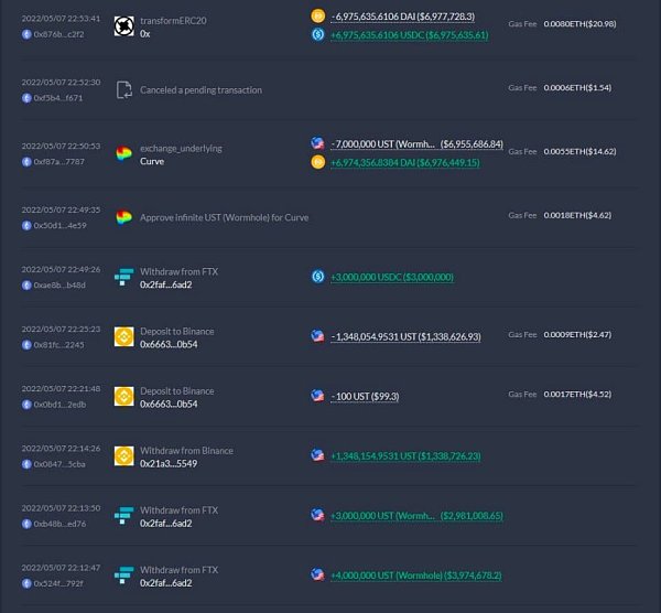 9、经常存入 Bald 部署者的币安钱包的一个地址,似乎是帮助触发 UST 脱钩的钱包之一。