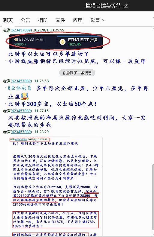 老潇:上下插针,皆在预料之中!以太坊再次完美斩获50点