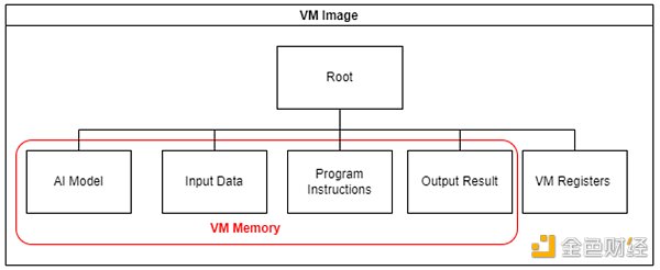 虚拟机镜像是用默克尔树管理的,只有默克尔根会被上传到链上智能合约。(默克尔根代表虚拟机状态)