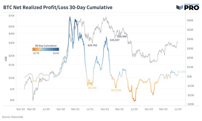 然而,值得注意的是,虽然当前的价格走势和已实现的利润并不一定支持全面牛市的概念,但迄今为止,我们已经目睹了之前已实现的损失/链上投降变成了小而稳定的利润流(旧硬币的价格水平高于购买时的价格水平)。