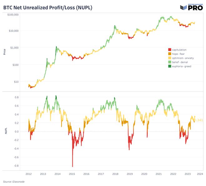 值得注意的是,比特币市场从未见过 NUPL 从投降阶段到乐观阶段的复苏,而没有随后访问 NUPL 的两个最高层之一或两者:信念和欣快感。