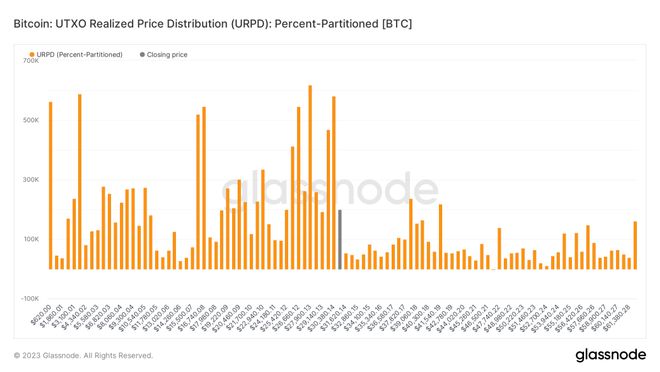 我们可以查看的另一个指标是 UTXO 已实现价格分布 (URPD),它可以显示当前交易范围上方的象征性空气有多稀疏。