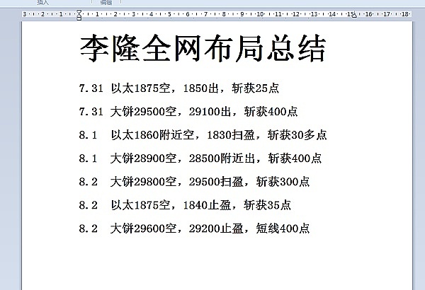 现价29200附近-295000分批开空,目标28800-28600附近,小仓自行了结,风控29800