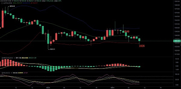 以太坊短线止盈10余点,1840上方直接空,方才扫盈1828下方,关注,每天东哥盘币稳健一两单