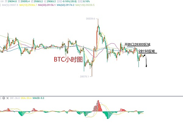 8月5日比特币(BTC)合约技术面分析:今日方面,大周期日线级别昨日报收小阴线,K线形态上连阴单阳,附图指标死叉向下,价格徘徊于均线下方,唯一没有到预期的是价格下跌力度小,延续性差,没有直接向下破位前期的低点位置,所以还不是积弱走势,整体处于震荡下行;短周期小时图昨日开跌口位置在29300区域,低点在28800区域,那么今日还是看区间震荡,周末本身走势慢,波动小,没必要去看多大利润,因此今日BTC短线合约交易策略:反抽29150区域空,止损29300区域,目标看28800区域;