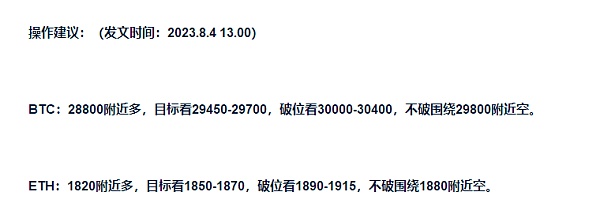 BTC:28800附近多,目标看29450-29700,破位看30000-30400,不破围绕29800附近空。