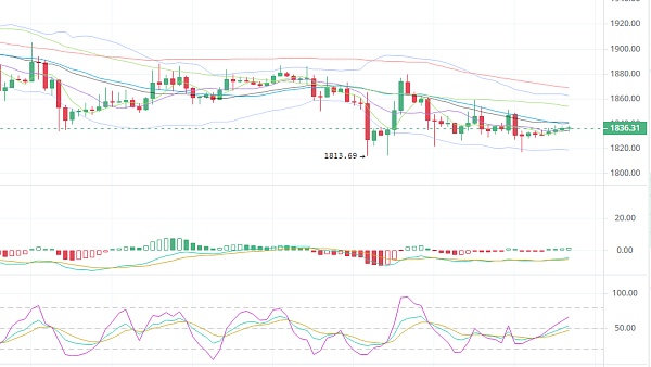 从日线及4小时方面来看,日线整体表现较为弱势,短期出现底背离现象,60日均线在1860一线形成强压,4小时方面KDJ三线从底部启航,多头增量,短期走势较为明显,综合来看,整体走势上偏多,但需要注意1860一线强压,1820附近多单继续持有。预计会有一波拉升!