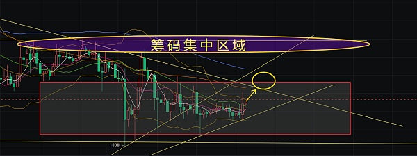 技术面四小时级别布林带随着行情的上行,并未进行张口,呈现的依旧是缩口状态,一根大阳线直接撑住布林带,能否撑破暂时需要观望,至少也要等到四小时换线之后看形态,各均线方面稍微拐头迹象,可惜的就是没有形成金叉,并不能直接连续破位,还摆脱不了震荡盘整,目前上方筹码集中区域也是望而不及,只能看之后的方向的择决