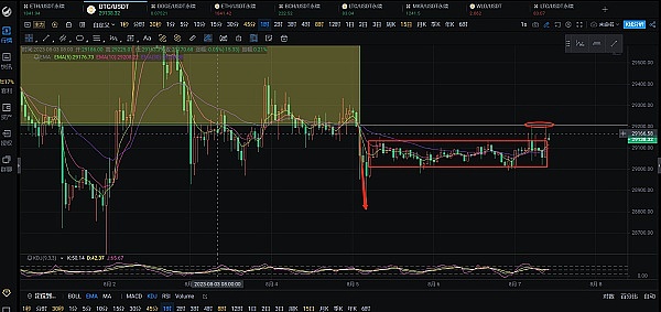 今日白盘操作建议:BTC29100-28950区间进多 目标29500 防守28800