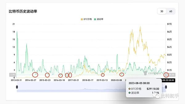 市场波动率,自比特币诞生以来,只有 8 次到过这么低