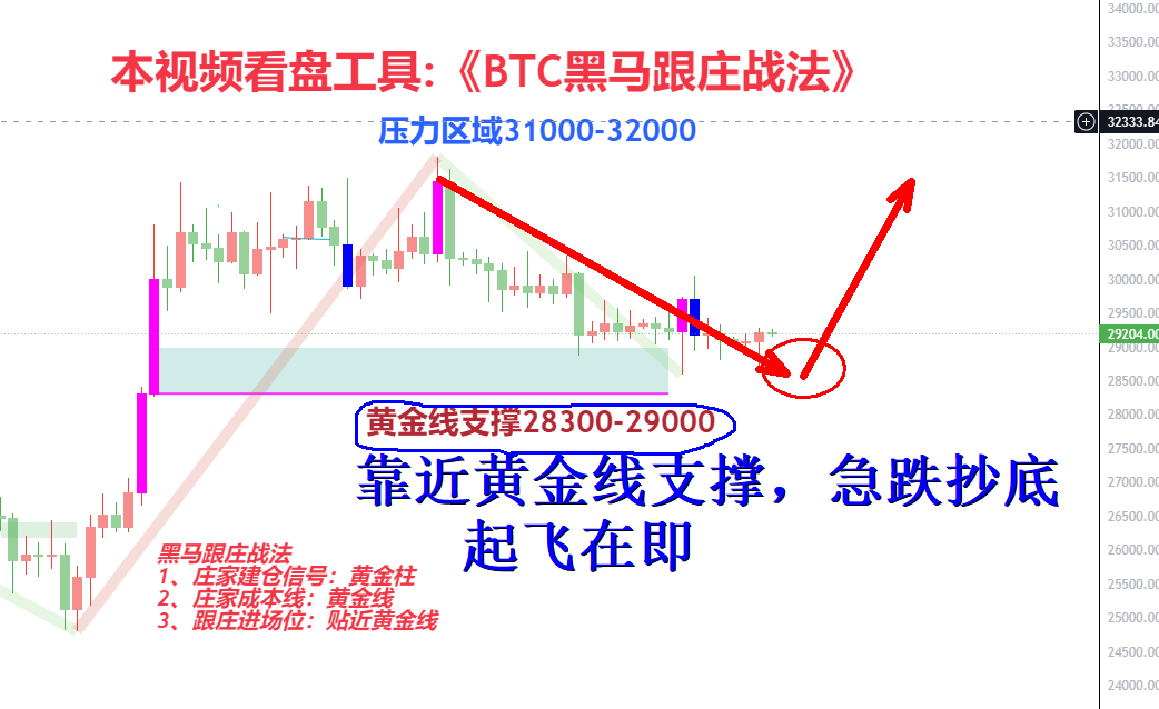 比特还是维持这几天的看法,有急跌机会,记得抄底,抄底范围子啊28000-28500,切记这个区域,是黄金线所在的位置,强支撑,第一次到达强支撑的位置,不要害怕,90%以上的概率打到这里会往上走;