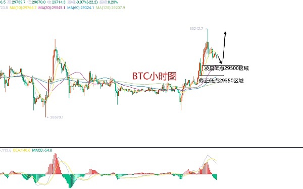 8月9日比特币(BTC)合约技术面分析:今日方面,大周期日线级别昨日报收小阳线,K线形态上连阳,价格运行于均线上方,附图指标金叉运行;这是经过了一个多月的震荡走势,时间换空间影响成型的金叉走势,前期高点阻力在31800区域,低点支撑在28500区域;按照当前的走势今日日内先看回撤后支撑反弹再接多了;短周期小时图前一日日内震荡上行,欧盘价格向上破高,美盘修正二次向上,而修正的低点位置在29350区域,如果今日看延续上涨的话,那么修正低点就是分水岭位置;因此今日BTC短线合约交易策略:回撤29500-29550区域多,止损29300区域,目标看30000-30300区域;