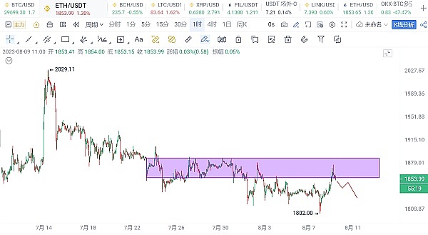 主流币白盘分析BTC大饼在破位30000一线之后,趋势开始进入多头的反转期,早间突破30000是以插针的形态完成,说明30000上方抛压非常重,上去之后马上被空方狙击,形成一个长长的上影线。四小时周期来看,行情还是区间震荡为主,下方支撑28600一线,上方压力30300一线,均线依然处于凌乱状态,没有聚合形成一个单边的趋势,所以在30000上方可以尝试做空,目标看29500—29300.ETH以太昨日多单拿到40点的利润,直接从白盘低点一路做多,做到最高点1876,中短线拿捏非常到位。日内反弹力度比较弱势,可以在1860附近做空,目标1835—1825.