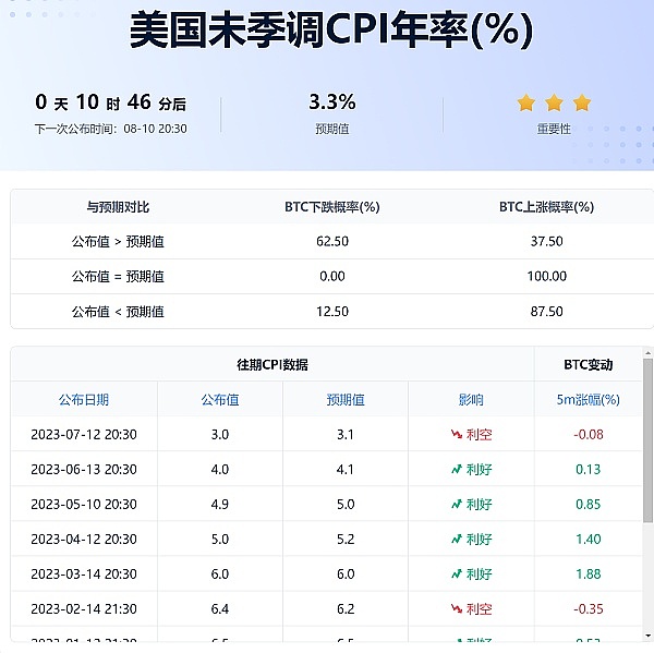 结合前面来看cpi数据对于行情的影响逐渐在减小。正常如果明晚的数据是继续下降的,那影响不大,行情该怎么走还是怎么走,不会出现太大的上涨和下跌。但是如果cpi数据出现了首次的反弹,那行情就不好说了,因为过去通胀数据一直是稳步下跌的,市场都习惯了。突然来个通胀数据反弹,那市场可能会直接偏空而引起下跌,这是我们需要注意的。