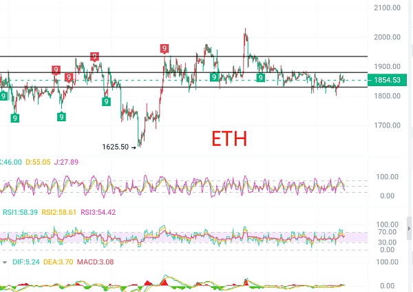 从四小时级别来看自前面一波小幅上涨后仍然难破30000大关的压制,K线上也是出现了TD9反转信号,大饼短期整体行情也是围绕在区间来回进行盘整,因为经过上一轮的上涨拉升以后,现在短线整体还在处于补缺的状态之中,短线下方依旧是要等支撑进行上移以后,方可打开后续的区间,就目前操作而言先等待回撤在进行多单布局。