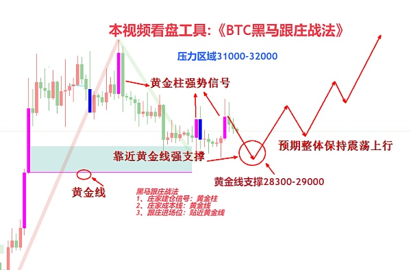 比特还是29000上方横盘调整,波动幅度较小,整体来看,处于横盘强势整理阶段,预计选方向突破的时间快了,毕竟整理这么久,最终还是要突破的,从盘面的黄金柱,黄金线来看,依旧处于大的支撑之上,那么大概率是要上去的,也就是思路等个回调到28500-29000区域去抄底;