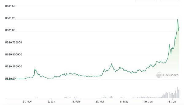 从算力来看,hiveon.com 算力管理平台数据显示,截至 8 月 10 日,$DNX 的算力占比达到了 18%,在该平台所列 POW 币中算力排名首位,远超 KAS、ETC、RVN 等项目。