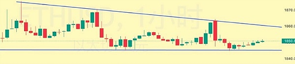 ETH短期形成三角形区间,竟然过去两天都没什么波动,今天出现突破性行情的概率偏高,留意上下突破情况会否发生