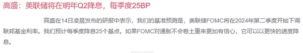 这是高盛的预测,可以看看,也可以看出主流机构对美联储降息节奏的预判,不管对与错,整体来看,这个时间点还算符合节奏,伴随着降息周期的到来,必然会提前引起加密领域的大幅波动;