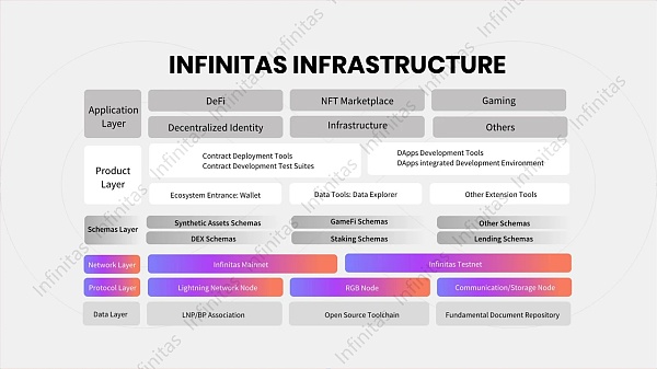 Infinitas是最早开启基于比特币构建图灵完备的智能合约赛道的项目之一,作为揉和 RGB 协议和闪电网络的比特币应用生态网络,旨在实现更高的隐私保护、卓越的吞吐量和出色的低延迟交易处理。Infinitas 作为一项创新的区块链解决方案,自 2021 年起夯实基于 RGB 的比特币图灵完备智能合约想法,充分发挥了比特币的安全性和共识机制,允许在比特币网络上创建更复杂的应用程序和智能合约,希望为用户带来卓越的交易体验。项目技术核心由比特币底层部分代码建设者,最早关注到 RGB 协议且进行翻译相关工作的 Top 级区块链科学家团队带领。Infinitas 将优先提供 Online IDE,数据浏览器,接入主流钱包等方式让开发者和用户参与到生态中,真正支持 RWA 和全链游戏等大体量商业应用的落地。