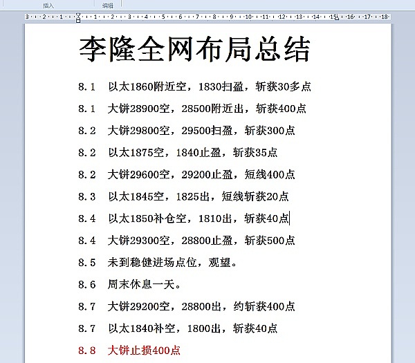 李隆:8.14以太坊再次止盈,上周复盘