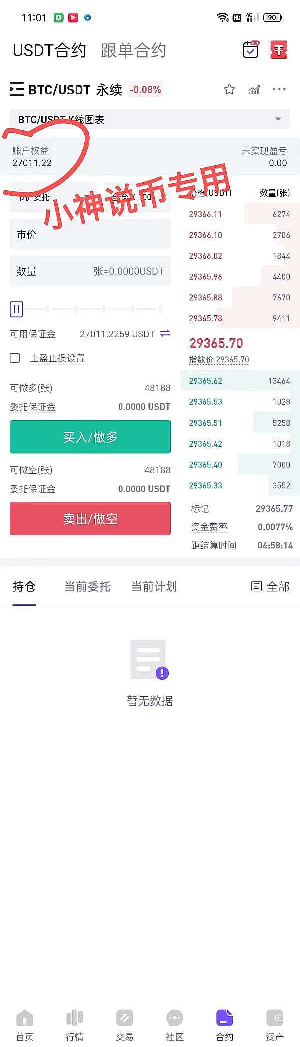 小神说币:恭喜 行情暴跌 比特币空单完美拿下3000点 太给力了