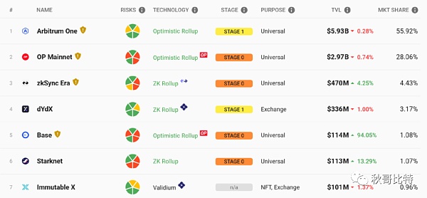 此外,上文提到的 OP 类项目中的 Base 公链,虽然只有约 1% 的市场份额,但由于是基于 OP Stack 构建,也是其逐步追赶 Arbitrum 不可或缺的关键因素。