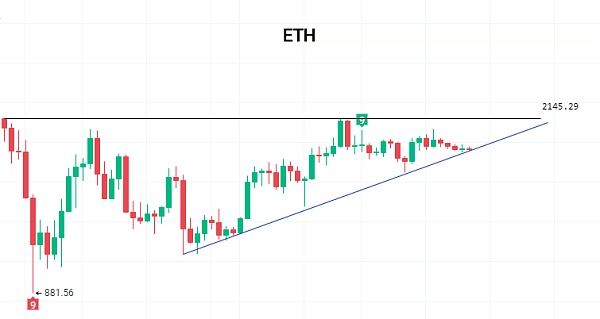 目前盘面已经走到了长期上涨趋势线附近,长期上涨趋势线如果撑不住,那以太坊短期再想反弹到2100上方是不可能的,反之则会迎来空头的春天。